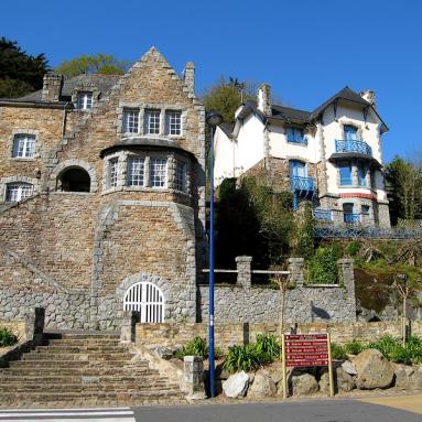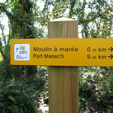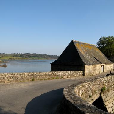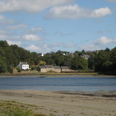 Pour rejoindre la mer, passer par le hameau de Kerioualen, belles maisons situées de parts et d'autres de cette route communale jusqu'à Moulin l'Abbé.