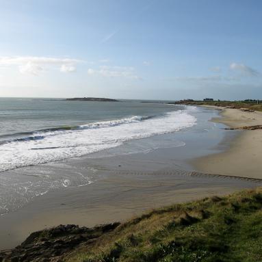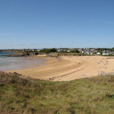 A la pointe petit port de pêche animé à l'arrivée des bateaux côtiers, également belles plages de sable fin le long du GR34.