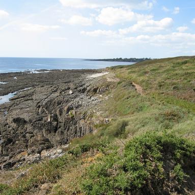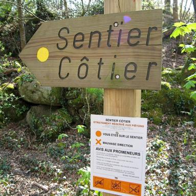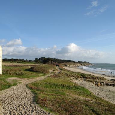 Rejoindre le GR34 depuis le sentier privé du gîte du manoir de Kerangosquer.